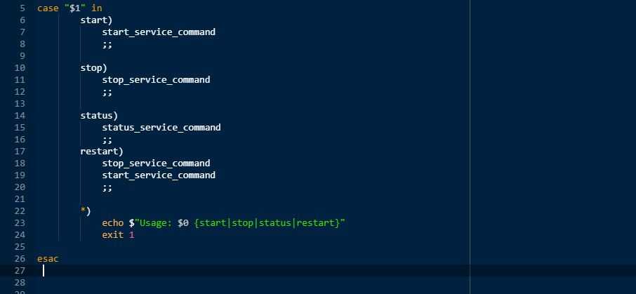 esacends thecasestatement, (itscasebackwards, geddit?), again its a common gotcha to forget to end withesacand it will make you crazy trying to figure out whats going wrong, so don't forget it!